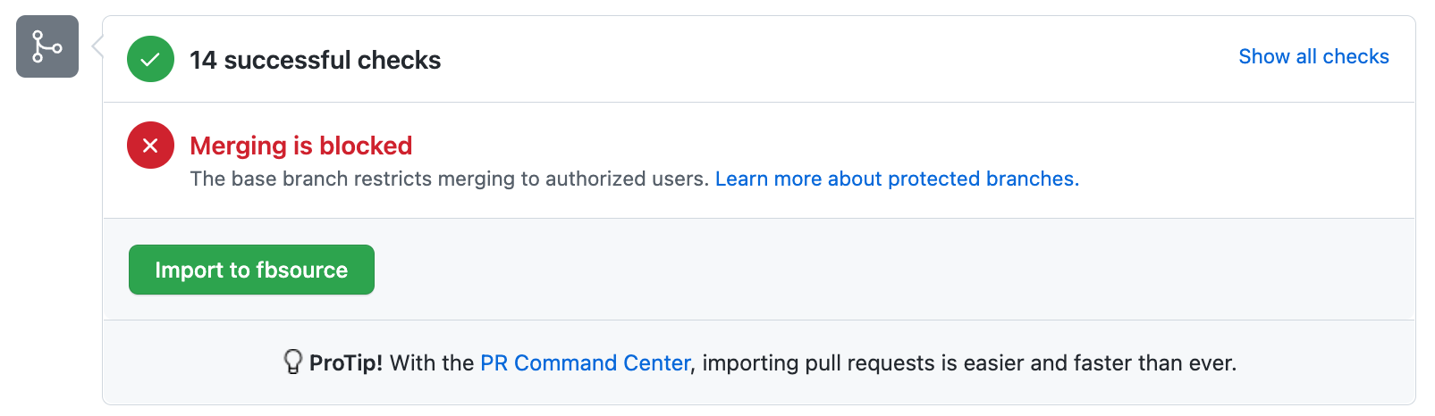 Meta employees are using a custom browser extension for GitHub that can import a pull request in one of two ways: the pull request can be "landed to fbsource", meaning it will be imported and the resulting diff will be approved automatically, and barring any failures, the changes will eventually sync back to main. A pull request may also be "imported to Phabricator", meaning the changes will be copied to an internal diff that will require further review and approval before it can land.
